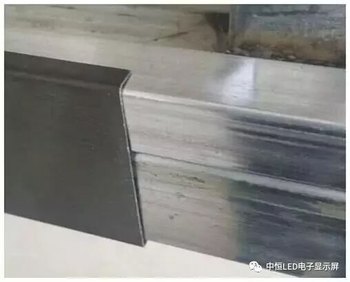 2、根据实际显示屏的厚度计算好需要卷边(不锈钢折边)的尺寸,制作商有条件的,最好能在顶部和底部冲出百叶窗,以便显示屏内部散热。